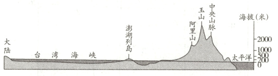 (云南中考)北回归线穿过台湾省中南部,读“台湾省沿北回归线地形剖面示意图”,完成9 - 10题。
