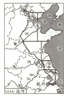 (江西中考)某骑行爱好者5月初从杭州出发,沿京杭大运河骑行,用时半个月到达北京。如图示意京杭大运河略图,据此完成1~4题。