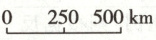 (1)原地图中图上1厘米的长度表示实际距离250千米,那么图上8毫米(即0.8厘米)的长度所表示的实际距离则是0.8个250千米,即(250×0.8)千米。