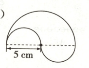 (4)3.14×5×2×$\frac{1}{2}$+3.14×5 = 31.4(厘米)[解析]由图可知,图形的周长 = 大圆周长的一半 + 2个小圆的周长的一半 = 大圆周长的一半 + 小圆的周长。
