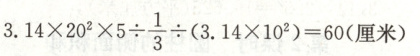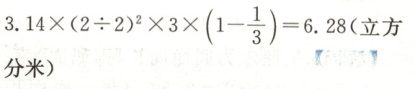 (3)一个底面周长是6.28厘米,高是3厘米的圆锥,它的体积是( )立方厘米。