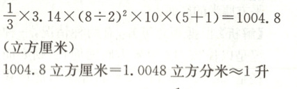 (4)沙漏又称沙钟,是我国古代一种计量时间的仪器。如图,沙漏此时下部沙子的体积是( )立方厘米。(注:沙漏上、下两个圆锥完全一样,且其中一个装满沙子)
