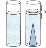 5. 一个圆柱形容器,从里面量底面半径是20厘米,里面盛有90厘米深的水,现将一个底面半径是10厘米的圆锥形铁块完全浸入水中(水未溢出),水面上升了5厘米(如图)。这个圆锥形铁块的高是多少厘米?(单位:厘米)