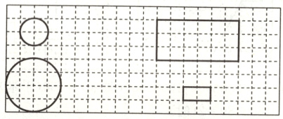 来的$\frac{1}{9}$,也就是长和宽都缩小到原来的$\frac{1}{3}$,即缩小后长方形的长是 2 格,宽是 1 格。注意不管是缩小还是放大,只改变图形的大小,不改变图形的形状。