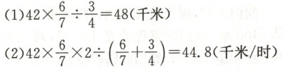 5. 一辆汽车往超市送货,平均每小时行42千米,$\frac{6}{7}$小时到达。这辆汽车原路返回时只用了$\frac{3}{4}$小时。