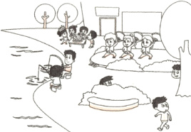 Today is Sunday. There are many people in the park. Tom is putting candles on the cake. He’s having a birthday party with his friends. Some old people are dancing. David and his father are fishing by the lake. Three boys are playing hide-and-seek. They are all very happy.