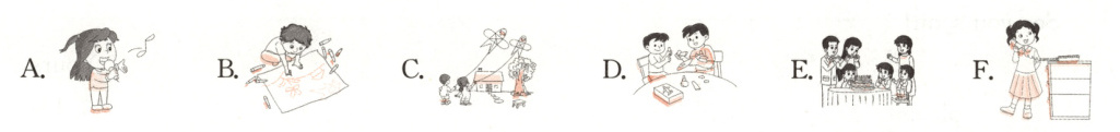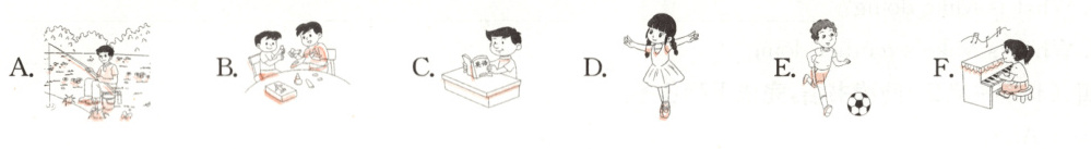 ( )4. playing the piano ( )5. playing football ( )6. dancing
