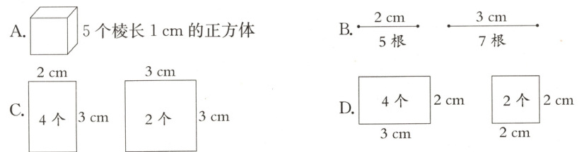 5. 新角度 空间观念 小林拿来下面的材料,不能拼成长方体模型的是( )。