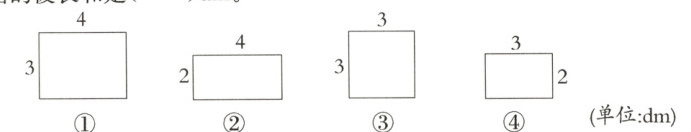 7. 新角度 创新题 现在有下列①、②、③、④四种纸板各2块,如果想围成一个长方体纸板箱,可以选择( )号、( )号和( )号纸板,这个长方体纸板箱的棱长和是( )dm。