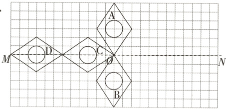 1. 以直线MN为对称轴作图形A的轴对称图形,得到图形B。(2分)