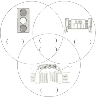 交通灯:B 图书馆:D 动物园:E 重合部分:A C