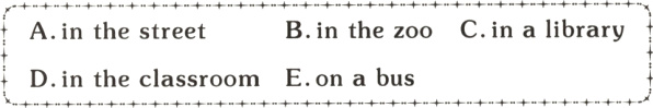 A.in the street B.in the zoo C.in a library D.in the classroom E.on a bus