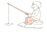 ( )3. He is fishing.
