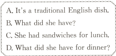 ( )1. 当你想问对方午餐吃了什么时,你会说: