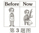 3.He ________ ________ ________ before.He's ________ ________ ________ now.(根据图片补全句子)