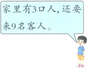 家里有3口人,还要来9名客人。