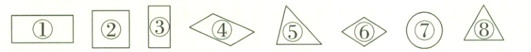 (①③)是长方形,(②)是正方形,(⑤⑧)是三角形,(⑦)是圆。