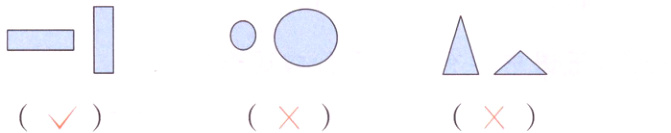 例: 下面各组图形完全相同吗?相同的画“√”,不同的画“×”。