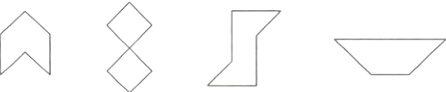 4.小芳用四个同样大的三角形拼出了许多好看的图案。看一看,想一想,她是怎样拼的?在下面的各图形中用虚线把四个三角形画出来。