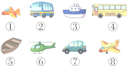 4. 新情境 交通工具 随着时代的变化和科学技术的进步,人们周围的交通工具越来越多。把下面这些交通工具分类。(填序号)