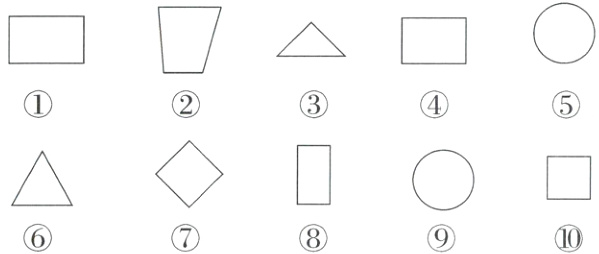 ( )是长方形,( )是正方形,( )是圆,( )是三角形。(填序号)
