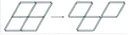 方法不唯一,如:把右上方的一根小棒向右移,把左下方的两根小棒移到右上方,即可使它变成3个一样大的平行四边形。
