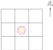 (3)题答案不唯一)[提示]小花的北面是小花上边的格子,画五角星;五角星的东面是五角星右边的格子,画三角形;三角形的南面是三角形下边的格子,画圆。