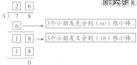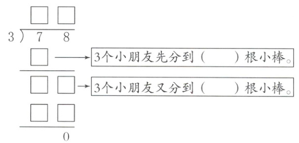 有78根小棒。把这些小棒平均分给3个小朋友,每个小朋友