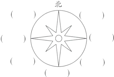 1. 先完成右面的方位示意图,再填一填。
