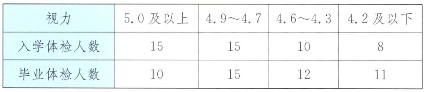 (2)视力5.0及以上的人数毕业时比入学时少( )人,视力4.6及以下的人数毕业时比入学时多( )人。
