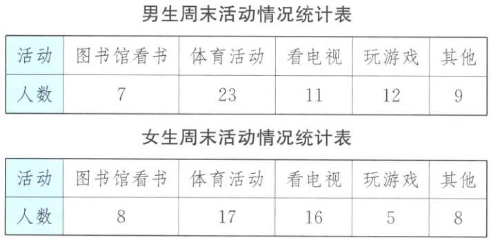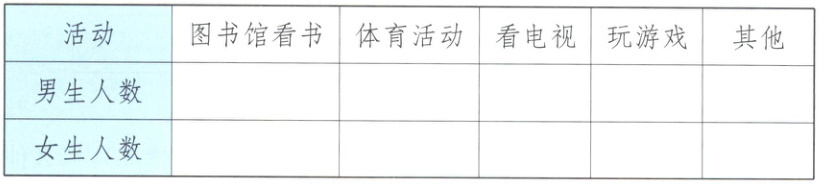 活动:图书馆看书、体育活动、看电视、玩游戏、其他