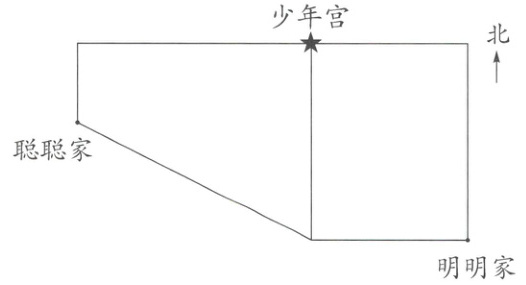 (2)聪聪家在少年宫的( )方向,明明家在少年宫的( )方向。