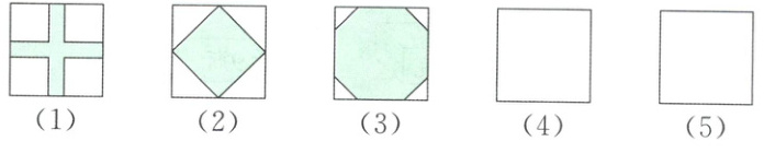 4. 画一画,将图(1)分别与图(2)、图(3)重叠,在图(4)、图(5)中画出重叠后的新图形。