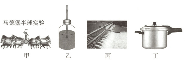 D. 图丁:战士们用压力锅能很快煮熟食物是因为锅内气压增大,水的沸点降低
