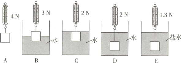 (4)若步骤D中仅把盐水换成密度比水小的等体积的酒精,弹簧测力计的示数________1.6N(选填“大于”“小于”或“等于”).