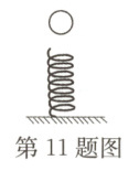 11. 新趋势(2023·宿州泗县月考)如图所示,一个小球从竖直立在地面上的轻质弹簧的正上方某处自由下落,接触弹簧后将弹簧压缩至最短,设在弹簧被压缩的过程中小球的速度为v,小球受到的重力和弹簧弹力的合力为F,不计空气阻力,则( )
