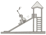 (图中为一小孩在滑梯上,有斜向上的力F)