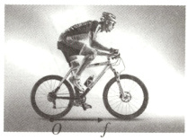 14. 如图所示是运动员骑自行车时的情景,请画出地面对自行车后轮水平方向作用力的示意图(O点是力的作用点).