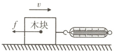 (图中为一木块在水平面上,受到水平向左的摩擦力f,木块有向右的速度v)