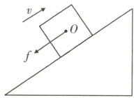 (图中为一物体在斜面上向上滑,受到沿斜面向下的摩擦力f,物体有沿斜面向上的速度v)