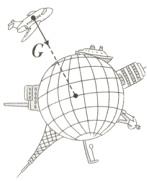 (图中为地球及卫星,卫星受到指向地球的重力G)