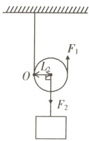 (图中为一动滑轮,有动力F1、阻力F2,动力臂L1、阻力臂L2)