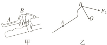 (2)图甲是自行车的前刹车闸,其中 ABO 部分可视为一种杠杆,其简化示意图如图乙所示,O 为支点,F2 为阻力,请在图乙中画出:
