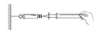 步骤一:把注射器中的活塞推至注射器筒的顶端,然后用橡皮帽封住注射器的小孔.