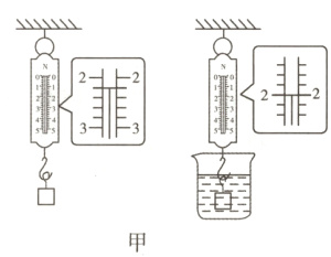 方法2:测量过程及示数如图乙所示,可得铜块排开水的体积为_______ mL. 根据F浮=G排=ρ液V排g可计算出浮力为_______ N(g取10 N/kg). 通过以上实验可得出铜块浸没在水中下沉的条件是______________________________.