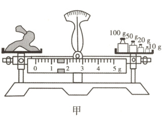 (1)小吴将天平放在水平桌面上,游码移到零刻度线处,发现天平的左盘较高,应将平衡螺母向_______调节,直至指针对准分度盘的_______刻度线. 将水龙头放在天平左盘,向右盘加减砝码并移动游码,天平平衡时如图甲所示,测得水龙头质量为_______ g;然后用溢水杯、水、小烧杯、细线和天平测出水龙头的体积并算出密度.