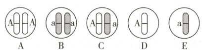 ③豌豆的体细胞中有7对染色体,其产生的卵细胞中的染色体数目是______条。豌豆杂交实验中,子二代红花植株体细胞中,染色体与控制花色的基因可以用如图中的______(填字母)表示。