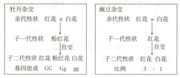 (2)花卉专家研究发现,纯种红花牡丹和纯种白花牡丹(基因用G、g表示)与纯种红花豌豆和纯种白花豌豆(基因用A、a表示)的杂交实验现象有所不同,结果如图所示。