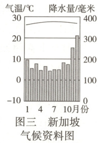 (3)读图三,新加坡的气候特征是______________________。