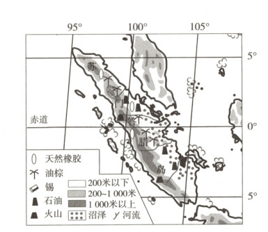 (烟台中考)爱好地理的小明从网上查到了一幅苏门答腊岛及附近区域略图。据此回答9~10题。